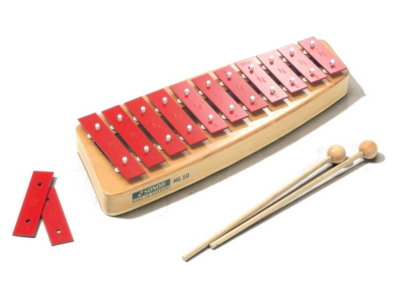 ドイツ・ゾノア社のメタルフォン(ソプラノグロッケン)です。世界的に有名な打楽器メーカーで、プロのミュージシャンが使用する楽器のみならず、幼児教育用の商品展開は60年以上の歴史を誇ります。