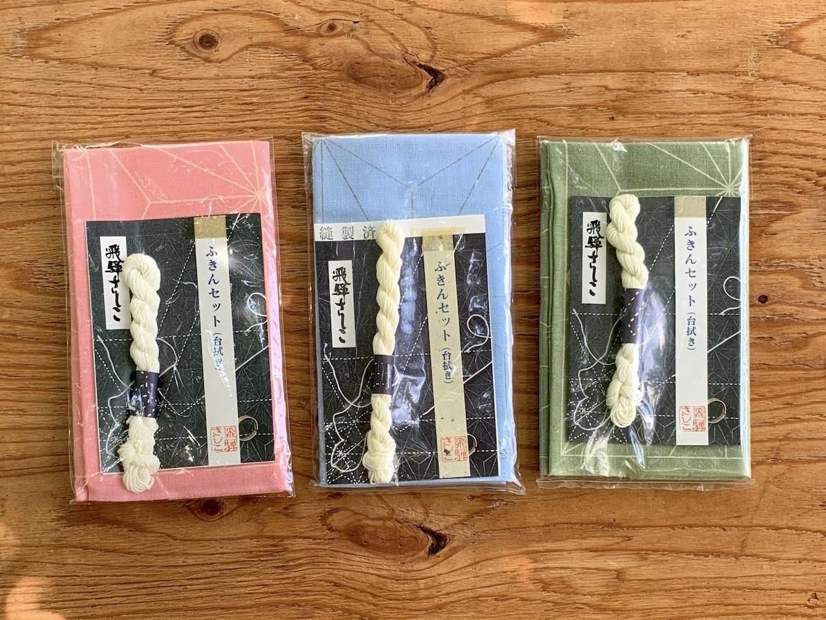※ピンク、グリーンは折りたたんで刺し子をする事で仕立てるタイプ、ブルーはミシンで仕立て済みです