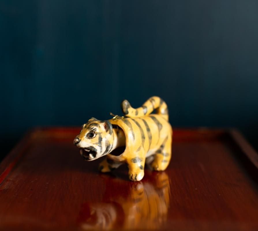 2022年1月7日〜31日に東京「ももも商会」にて開催された「コマとカルタ」展のために制作された7点の縁起物陶作品群の1つです。