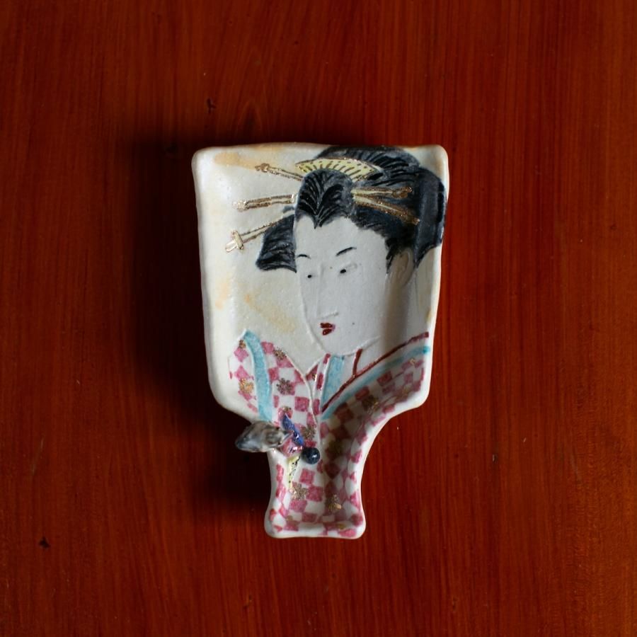 2022年1月7日〜31日に東京「ももも商会」にて開催された「コマとカルタ」展のために制作された7点の縁起物陶作品群の1つです。