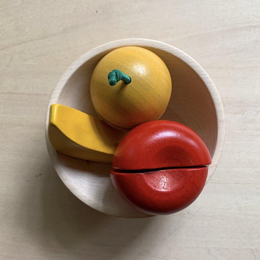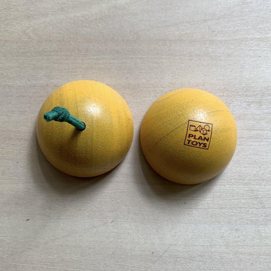 PLAN TOYS社のおままごと用具材の「オレンジ」です。